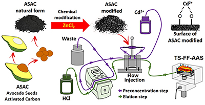 Avocado seed activated carbon as adsorbent for online Pb2+ preconcentration and thermospray flame furnace atomic absorption spectrometry (TS-FF-AAS) determination.