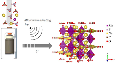 It is described herein an ultra-fast hydrothermal microwave assisted method for obtaining a series of sodium-carbonate-phosphate compounds, Na3MCO3PO4 (M = Mn, Fe, Co or Ni) upon 5 min thermal processing, and with relevant application as cathode material in Na-ion batteries.