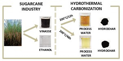 Applying hydrothermal carbonization as treatment process to vinasse a solid is generated, rich in nutrients, and a liquid phase cleaner than vinasse.