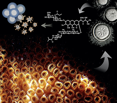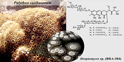 The colonial zoanthids Palythoa harbor a wide diversity of associated microorganisms including bacteria, promising source of biologically active compounds. New chromomycins, isolated from a Streptomyces sp. associated to the Brazilian Palythoa caribaeorum, showed potent cytotoxicity against resistant tumor cells (IC50 of 0.2 to 133 nM). Details are presented in the Article Dextrorotatory Chromomycins from the Marine Streptomyces sp. Associated to Palythoa caribaeorum by Francisco C. L. Pinto, Edilberto R. Silveira, Ana Caroline L. Vasconcelos, Katharine G. D. Florêncio, Francisca A. S. Oliveira, Bianca B. Sahm, Letícia V. Costa-Lotufo, Anelize Bauermeister, Norberto P. Lopes, Diego V. Wilke and Otília D. L. Pessoa on page 143.