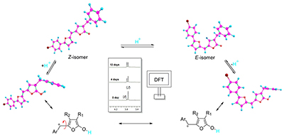 Acid-catalyzed Z-E isomerization of γ-alkylidenebutenolide observed from experiments and studied using density functional theory (DFT).