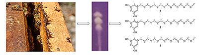 Argentation chromatography purification of a Yucatecan propolis extract with antioxidant activity allowed the identification of six resorcinolic lipids.