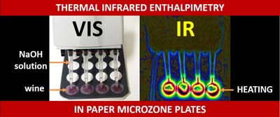 Wine samples were added in the hydrophilic microzones of a paper device followed by addition of NaOH solution in stoichiometric excess. An infrared camera was used to record the analytical operations. The neutralization reaction releases heat, and the temperature of solutions rises, and it could be directly related to the wine acidity.