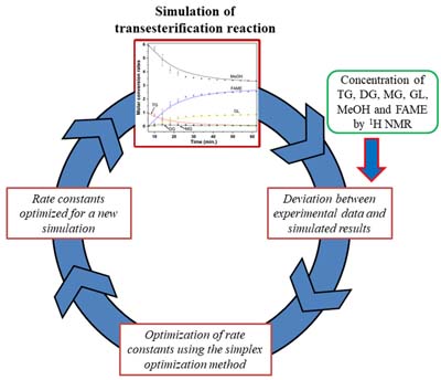 The transesterification reaction of soybean oil was modeled considering the 3 steps of the direct and reverse reactions following a second order general kinetics by the finite element method.