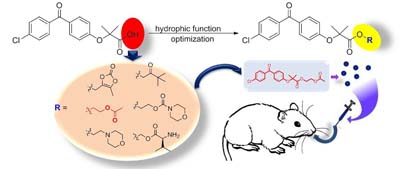 A series of fenofibric acid ester pro-drugs were synthesized. The oral administration (20 mg kg-1) of JF-2 showed a relative bioavailability of approximately 272.8% compared to fenofibrate.