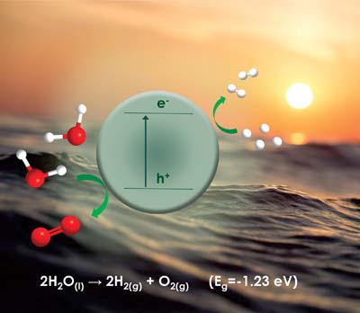 This figure illustrates the generation of charge carriers in semiconductor photocatalyst nanoparticles as a result of band gap excitation by sunlight. These charge carriers can then be employed to promote the water splitting reaction for the generation of H2. This transformation is of paramount importance to the solar-to-chemical energy conversion. We review herein the fundamentals of H2 generation from water splitting and representative classes of photocatalytic materials. Details are presented in the Review An Overview of the Photocatalytic H2 Evolution by Semiconductor-Based Materials for Nonspecialists by Ivo F. Teixeira, Jhon Quiroz, Mauricio S. Homsi and Pedro H. C. Camargo on page 211.
