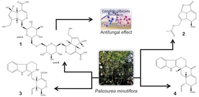 A new compound minutifloroside and three known compounds isolated from Palicourea minutiflora.