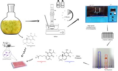 7α-Hydroxyroyleanone gave an unexpected product on dehydration reaction. A naphtoquinone was formed as major product along with 6,7-dehydroroyleanone and a complex mixture of compounds. The reaction products were purified by high-speed countercurrent chromatography and tested for their anti-Leishmania activity.