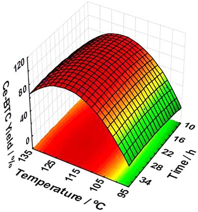 Pioneer work based on a factorial design to optimize the Ce3+-based metal-organic framework (MOF)-76 synthesis.