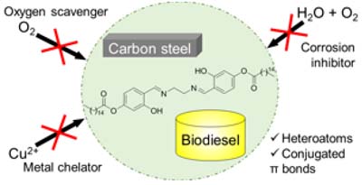 Synthesis and application of a new phenolic-Schiff base as antioxidant for biodiesel and corrosion inhibitor for carbon steel.