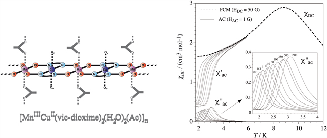 The oximato-bridged copper(II)-manganese(III) chains of formula [MnCu(deg)2(CH3COO)(H2O)2] (1), [MnCu(meg)2(CH3COO)(H2O)2] (2) and [MnCu(dmg)2(CH3COO)(H2O)2] (3) (H2deg = diethylgly-oxime, H2meg = methylethylglyoxime and H2dmg = dimethylglyoxime) exhibit intrachain ferromagnetic coupling and slow relaxation of the magnetisation, behaving as single chain magnets (SCMs).