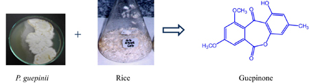 The endophytic fungus Pestalotiopsis guepinii was grown on rice and produced a new anthra-quinone derivative named guepinone.