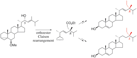 The C-24 configurations of the two marine sterols were determined by comparing their NMR data with those of stereodefined (24R)- and (24S)-samples that were synthesized in routes involving the orthoester Claisen rearrangement.