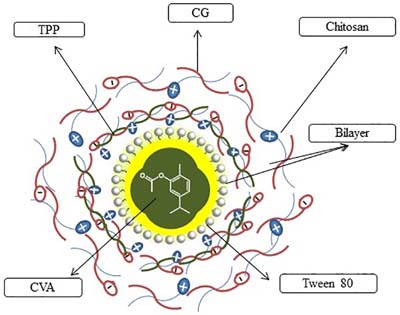 Nanoencapsulated carvacryl acetate (nCVA) with chitosan, sodium tripolyphosphate (TPP) and chichá gum (CG) in bilayer.