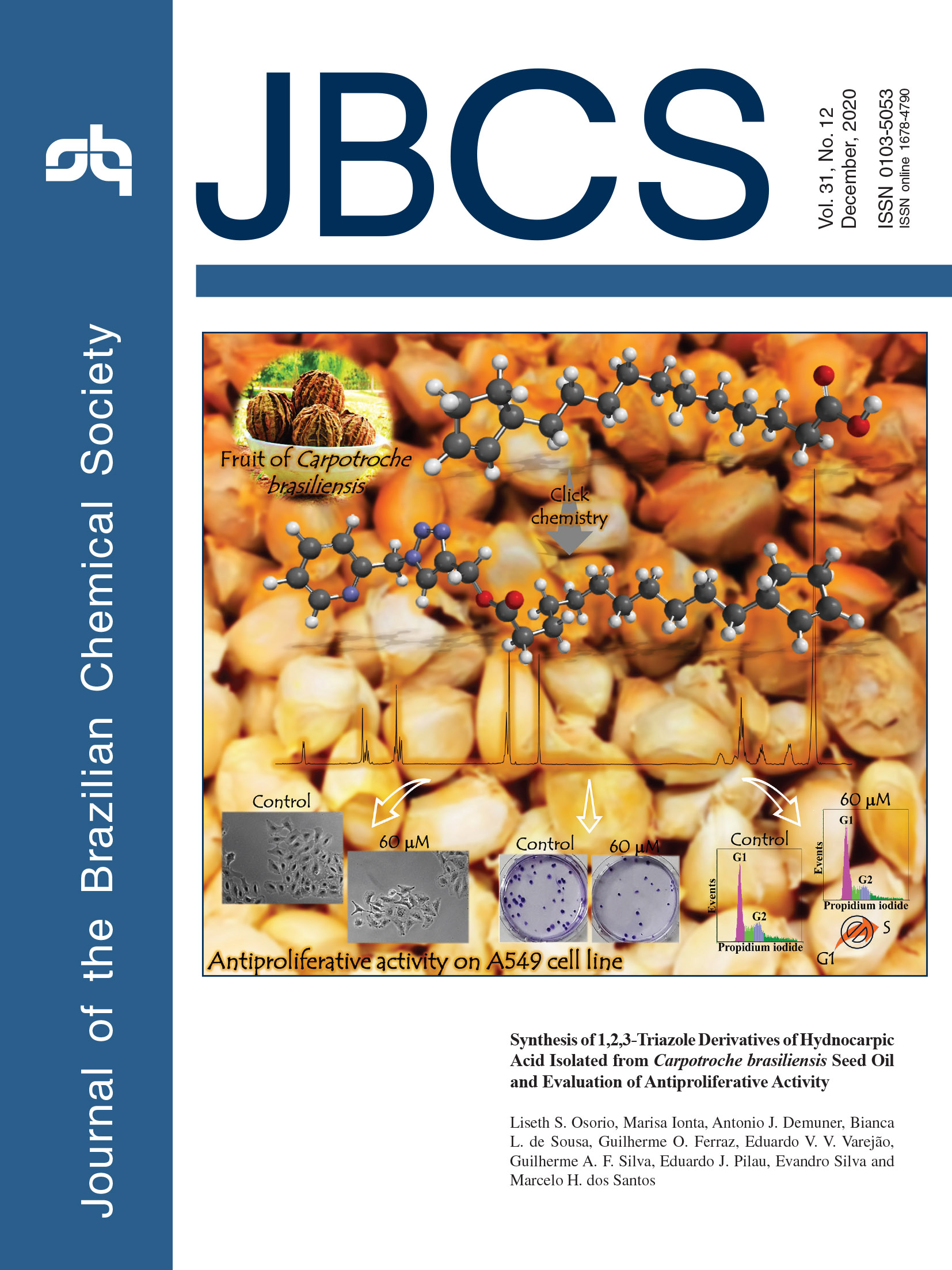 The hydnocarpic acid isolated from Carpotroche brasiliensis seed oil was used to obtain a series of derivatives containing1,2,3-triazole ring. The derivative (R)-(1-(pyridin-2-ylmethyl)-1H-1,2,3-triazol-4-yl)methyl-11-(cyclopent-2-en-1-yl) undecanoate exhibited promising antiproliferative activity on the lung adenocarcinoma cell line by inhibiting cell cycle progression at G1 phase. Details are presented in the Article Synthesis of 1,2,3-Triazole Derivatives of Hydnocarpic Acid Isolated from Carpotroche brasiliensis Seed Oil and Evaluation of Antiproliferative Activity by Liseth S. Osorio, Marisa Ionta, Antonio J. Demuner, Bianca L. de Sousa, Guilherme O. Ferraz, Eduardo V. V. Varejão, Guilherme A. F. Silva, Eduardo J. Pilau, Evandro Silva and Marcelo H. dos Santos on page 2500.