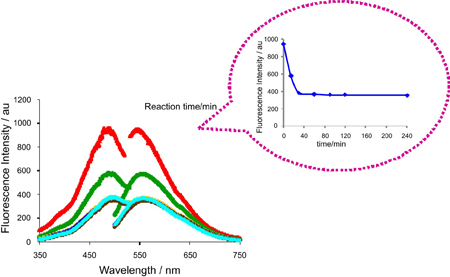 Fluorescence measurements obtained directly from the solid phase at different reaction time. A simple, non-destructive and low cost method to evaluate the reaction progress, study the reaction kinetic and determine the resin loading.