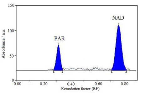 High performance thin layer chromatographic method (HPTLC) for analysis of nabumetone and paracetamol (silica gel 60 F254 as stationary phase and toluene:propanol-2:acetic acid; 8:2:0.1, v/v/v as mobile phase) in fixed dose combination has been developed.