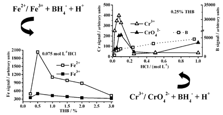 Generation of volatile species (CVG) from different ions (including cations and anions) of transition metals in the acidic media by reaction with sodium tetrahydroborate reductant using ICP OES as detection method was presented.