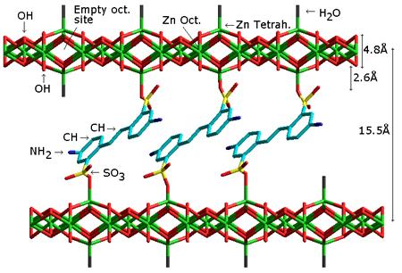 Organic ultraviolet ray absorbers were intercalated into zinc hydroxide nitrate, either by direct alkaline co-precipitation or topotactic exchange reactions. After the intercalation, the UV absorption capacity was similar to that of the solid salts and acids, the effect being attributed to the confinement of the anionic species in the host two-dimensional gallery.