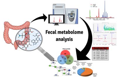 A comprehensive profile of the fecal metabolome was achieved by the combination of extractions and liquid chromatography-high resolution mass spectrometry (LC-HRMS) methods.