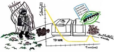 A time-domain 1H nuclear magnetic resonance spectroscopy (TD-NMR) method was developed and validated (DOQ-CGCRE-008) for determining Brazil nuts oil content. Statistically similar contents were found in two different labs (66.93 ± 4.69 and 70.13 ± 4.15%). Such approach can be embraced as a reference method for in situ monitoring of the oil contents.