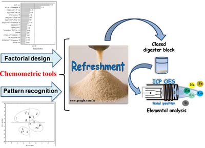 An analytical method for twenty-four inorganic constituent determination in powder refreshment by inductively coupled plasma optical emission spectroscopy (ICP OES) was developed.
