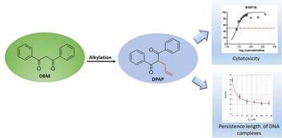 This study describes the DNA (deoxyribonucleic acid) interaction with the allyl dibenzoylmethane derivative (1,3-diphenyl-2-allyl-1,3-propanedione, DPAP) that presents antitumor activity against B16F10 and Tm5 melanoma cells.
