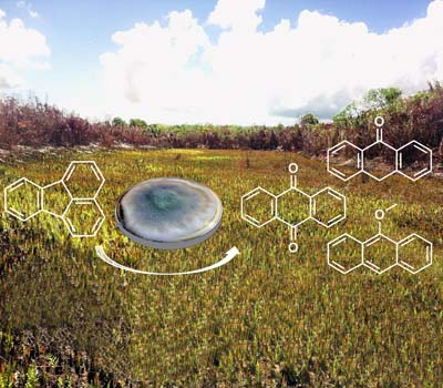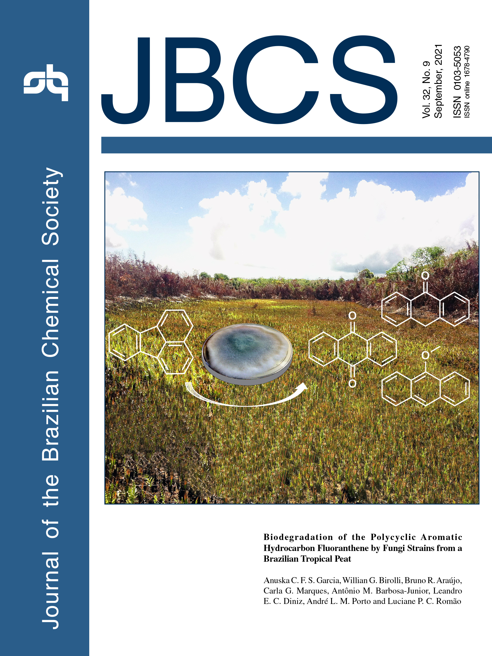 Contamination by pollutants from anthropogenic activities is a serious environmental issue. This illustration represents the biodegradation of fluoranthene, a polycyclic aromatic hydrocarbon, by fungi isolated from the Brazilian tropical peat of Santo Amaro das Brotas (Sergipe state) with the identification of biotransformation products. Showing that these microorganisms present potential for bioremediation. Details are presented in the Article Biodegradation of the Polycyclic Aromatic Hydrocarbon Fluoranthene by Fungi Strains from a Brazilian Tropical Peat by Anuska C. F. S. Garcia, Willian G. Birolli, Bruno R. Araújo, Carla G. Marques, Antônio M. Barbosa-Junior, Leandro E. C. Diniz, André L. M. Porto and Luciane P. C. Romão on page 1874.