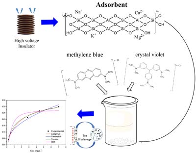 In this study, an aluminosilicate residue of high voltage transformer insulators was used as an adsorbent in basic dye solutions and its parameters and adsorption properties were investigated during the process.