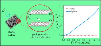 The remarkable current density of BiVO4 electrode, associated with its morphological and structural properties of the electrode surface.