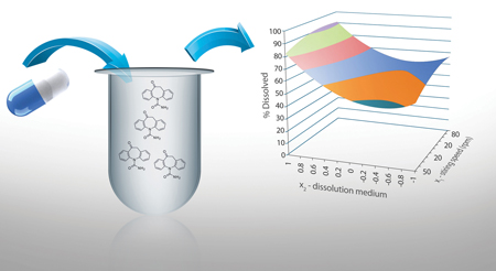 The dissolution of the oxcarbazepine was carried out utilizing a dissolutor and different parameters in 18 experiments which lead to the plotting of a surface response graph. This allowed establishing the best conditions for the test.