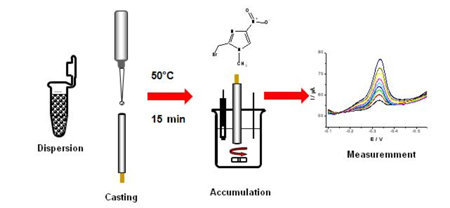 4-NimMeBr was adsorbed on the MWCNT modified electrode thus permitting the implementation of an adsorptive stripping voltammetric (ASV) method.