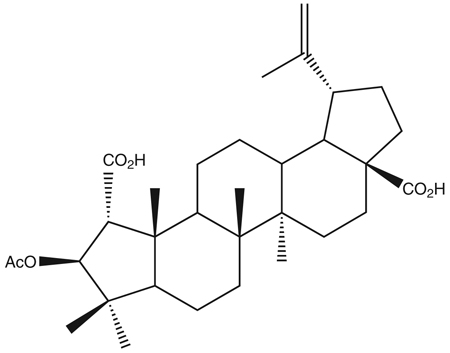 3-O-acetylceanothic acid, a new natural ceanothane triterpene together with the known metabolites ceanothic acid, ceanothenic acid, betulinic acid, discarine B and chrysophanein, were isolated from the root extract of C. greggii var. yucatanensis and evaluated for their antiprotozoan, cytotoxic and anti-proliferative activities.