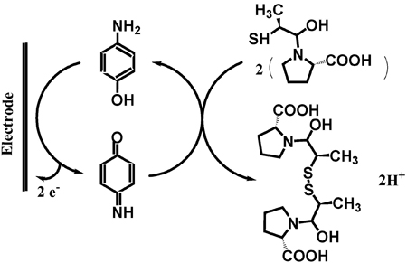 A modified electrode (by incorporation of carbon nanotubes with p-aminophenol as a mediator) was used as voltammetric sensor for the determination of captopril. The modified electrode has high electrocatalytic activity for captopril oxidation at pH 6.0. The voltammetric sensor was successfully applied for the determination of captopril in drug and urine samples.