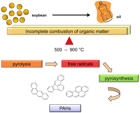 Polycyclic aromatic hydrocarbons (PAHs) are organic contaminants, which occur in air, soil and food, from incomplete combustion or pyrolysis of organic matter. In edible oils, the presence of PAHs is mainly attributed to the smoke drying of the oil seeds, during oil production.