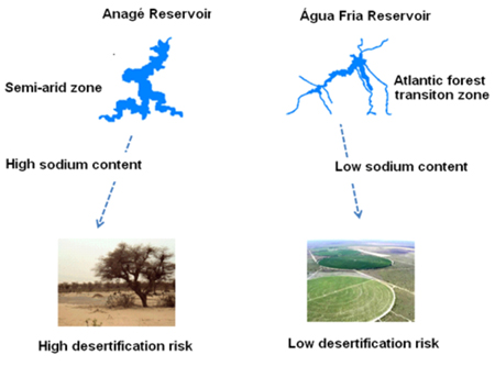 The water collected in the Anagé Reservoir during the rainy season was classified as S3 and S4, showing very high sodicity values. So it was considered inappropriate for irrigation use.