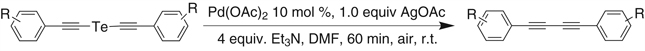 The synthesis of symmetric conjugated diyne systems with electron-withdrawing or electron-donating substituents via a palladium-catalyzed detelluration of bis(arylethynyl)tellurides and bis(alkylethynyl) tellurides is described.