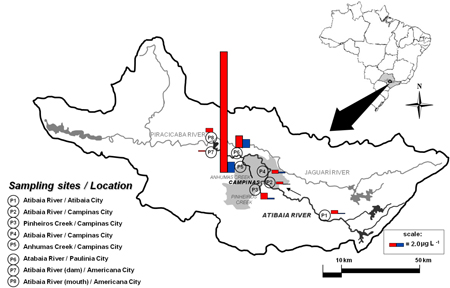 Details are discussed in the article Spatial and Seasonal Variations of Pharmaceuticals and Endocrine Disruptors in the Atibaia River, S