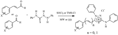 A new and efficient synthesis of eight 1,3,4-thiadiazolium-2-phenylamine derivatives was realized using microwave and ultrasound irradiation. The target compounds were obtained in good yields and remarkably short times. The cytotoxicity against K562 human leukemia and Daudi lymphoma lines was also evaluated.