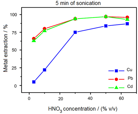 The development of a "green" sample preparation procedure for the analysis of inorganic fertilizers based on ultrasound-assisted extraction using an ultrasonic bath is described. Samples were sonicated for 5 min in the presence of 2 mL of 50% (v/v) HNO3 inside glass tubes and satisfactory recovery values were obtained.