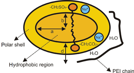 The image of the graphical abstract cartoons the formation of supramolecular complexes produced by the association of poly(ethyleneimine) (PEI) and mixtures of sodium cholate (NaC) and sodium dodecyl sulfate (SDS). The formation of such complexes has been investigated by using a variety of techniques and the results are given in this article.