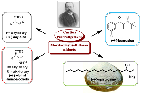 We describe herein an approach to the preparation of acyloins and anti-1,2-aminoalcohols based on a Curtius rearrangement coupled with Morita-Baylis-Hillman adducts as substrates. Based on this new approach, the total synthesis of bupropion and spisulosine were accomplished.