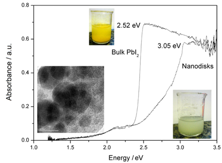 Lead iodide nanodisks were prepared using cucurbit[7]uril as a template. These nanoparticles exhibit strong absorption blue-shift as a result of one-dimensional quantum confinement.