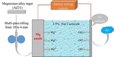 In this work, the influence of rolling passes on microstructure, corrosion behavior, electrochemical performance, and battery performance of AZ31 magnesium alloy was studied.