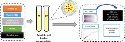 A nanoemulsion containing betulinic acid and linseed oil, stabilized with Pluronic F127 and polyglycerol polyricinoleate (PGPR), has antitumor cytotoxic activity and controlled release.