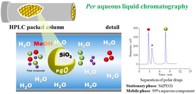 Development of a polar high-performance liquid chromatography (HPLC) stationary phase based on poly(ethylene oxide-co-dimethylsiloxane) thermally immobilized on silica particles for separations of polar compounds under highly aqueous mobile phases. Per-aqueous liquid chromatography mode, a greener liquid chromatography approach.