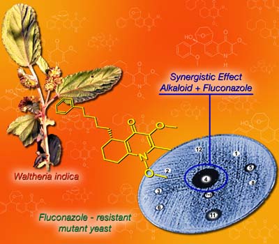Waltheria indica is a plant species that has a pantropical distribution and biosynthesizes 4-quinolone alkaloids. These substances were submitted to biological tests, including chemosensitization assays that use mutant strains of Saccharomyces cerevisiae, which overexpress proteins of Candida albicans (that confer resistance to xenobiotics). Some of these alkaloids showed antimicrobial activity against these resistant strains and also showed a synergistic effect when administered together with the triazole antifungal fluconazole. Details are presented in the Article Leishmanicidal and Antimicrobial Activities of 4-Quinolone Alkaloids from Stems of the Medicinal Plant Waltheria indica (Malvaceae) and their Chemotaxonomic Significance by Raquel M. Silva, Levy T. S. Domingos, Gabriellen M. M. de Castro, Marinella S. Laport, Antônio Ferreira-Pereira, Murilo M. C. Lima and Fernando Cotinguiba on page 1291.