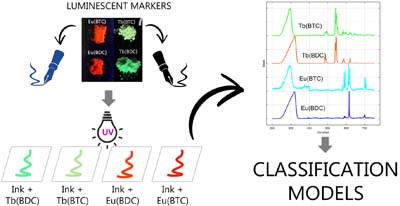 Chemometric tools make it possible to differentiate the luminescent markers inserted in the ink, creating a document encoding process.