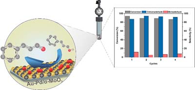 The α-MoO3 support employed in this work allows the synthesis of potentially active and selective Au-Pd catalysts for the aerobic oxidation of cinnamyl alcohol under base and solvent-free conditions.