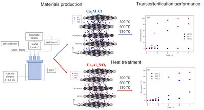 Synthesis of heterogeneous catalysts derived from thermal treatments on hydrocalumite-type compounds intercalated with chloride and nitrate anions was carried out. The prepared catalysts were used in transesterification reactions to produce biodiesel.
